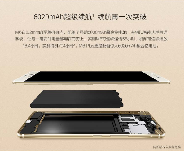 M6既配備了驚人的大容量電池,又實現(xiàn)了機身8.2MM的舒適厚度,打破了大容量電池與輕薄機身矛盾體的傳統(tǒng)。