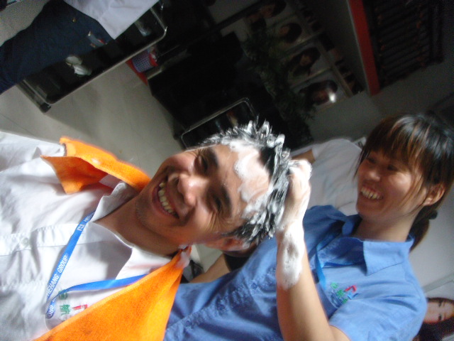 第一次享受同事的洗頭服務!施與受,都開心!