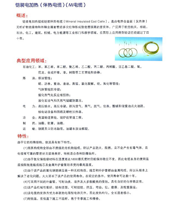 - 產品名稱:鎧裝電加熱電纜